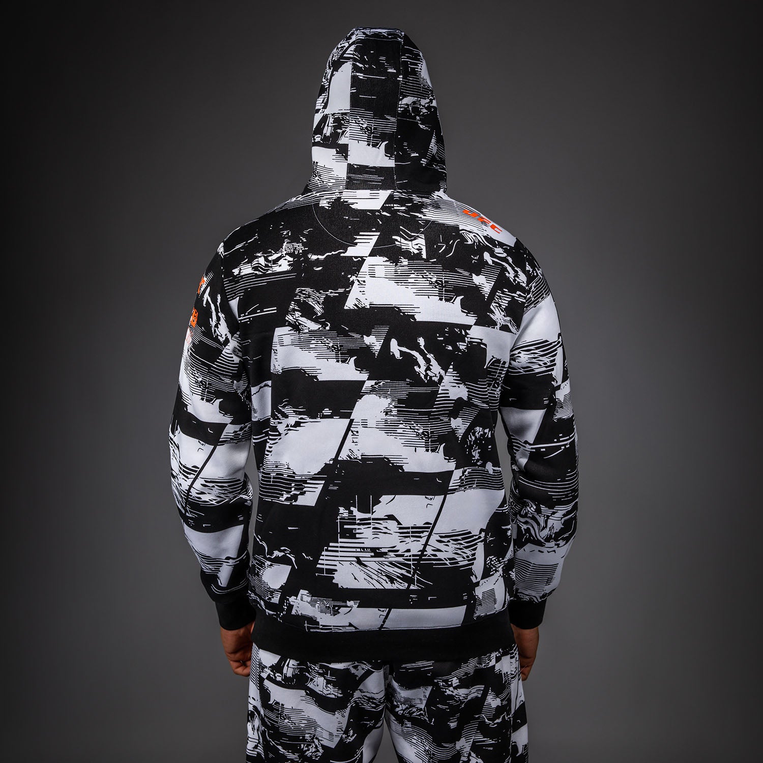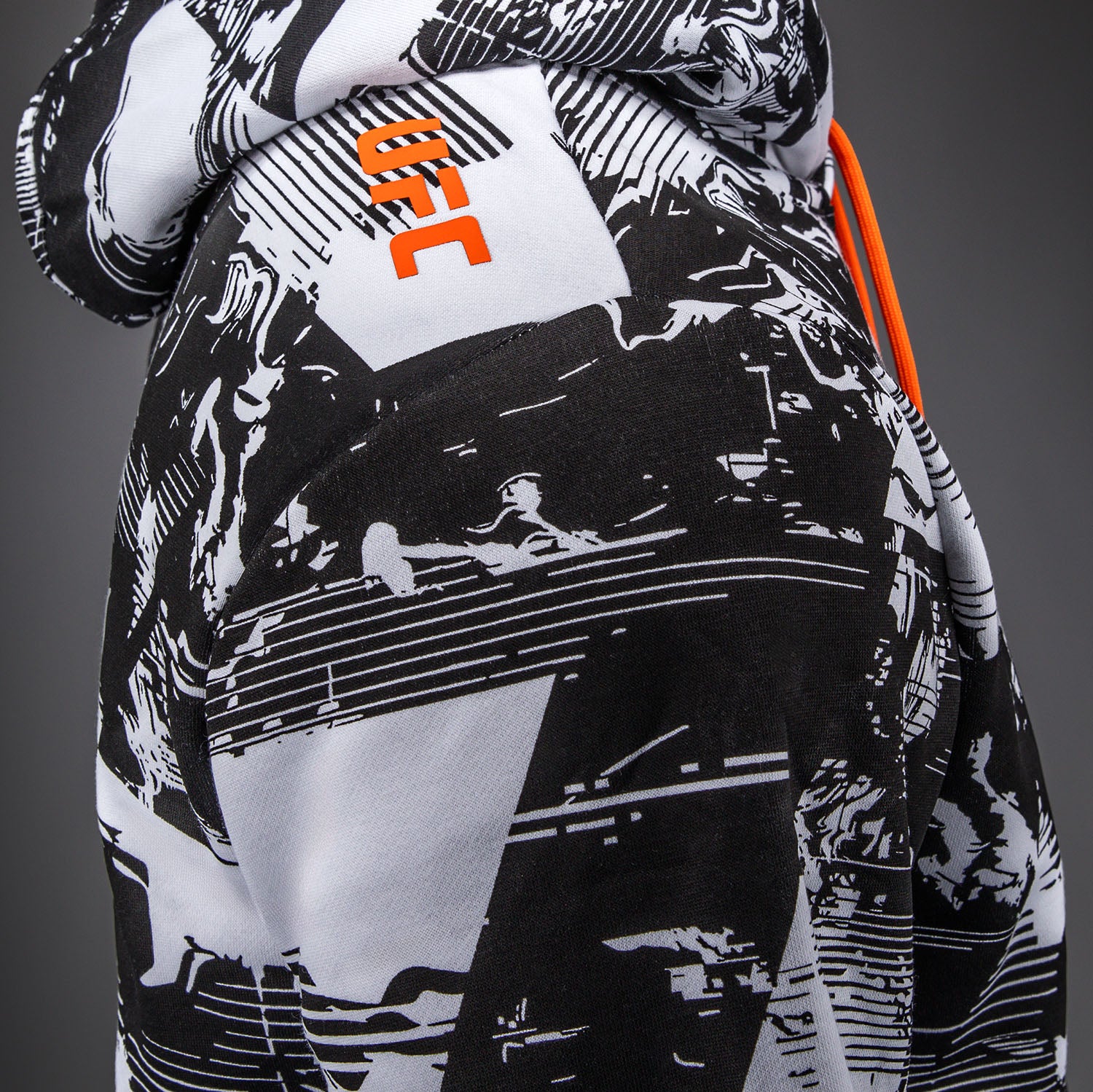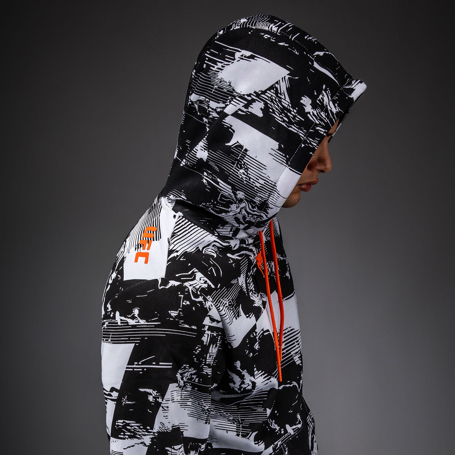 The Men’s UFC Zenith by Venum Fight Week Pullover Hoodie features branding at the chest, left arm and back of the right shoulder. The kangaroo style front pocket and drawstring hood add finish to this premium hoodie.