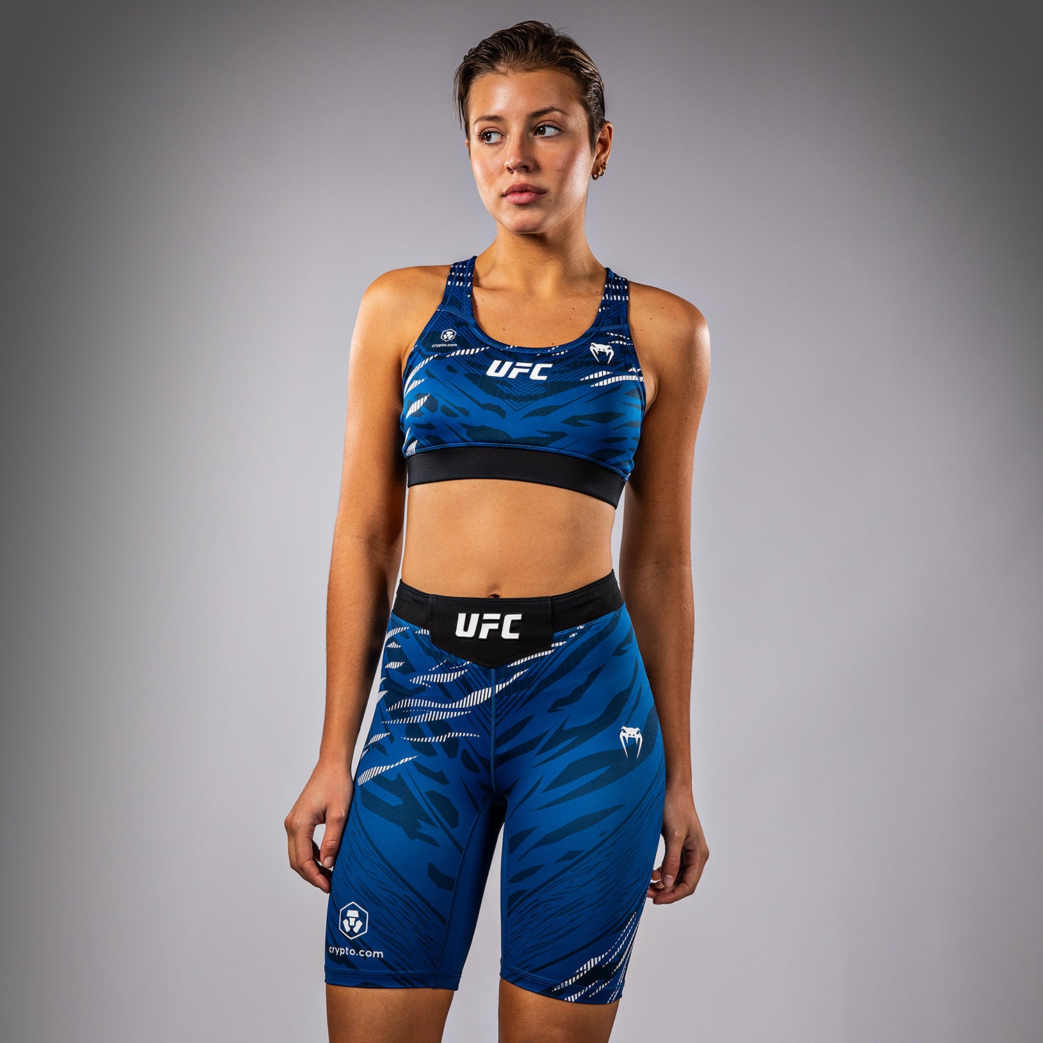 The UFC Fusion by Venum Authentic Fight Night Women’s Sports Bra is suitable for cardio, lifting and sparring. The elasticated band is supportive, while the racer-back cut ensures freedom of movement. This black/gold colorway is reserved for UFC champions.