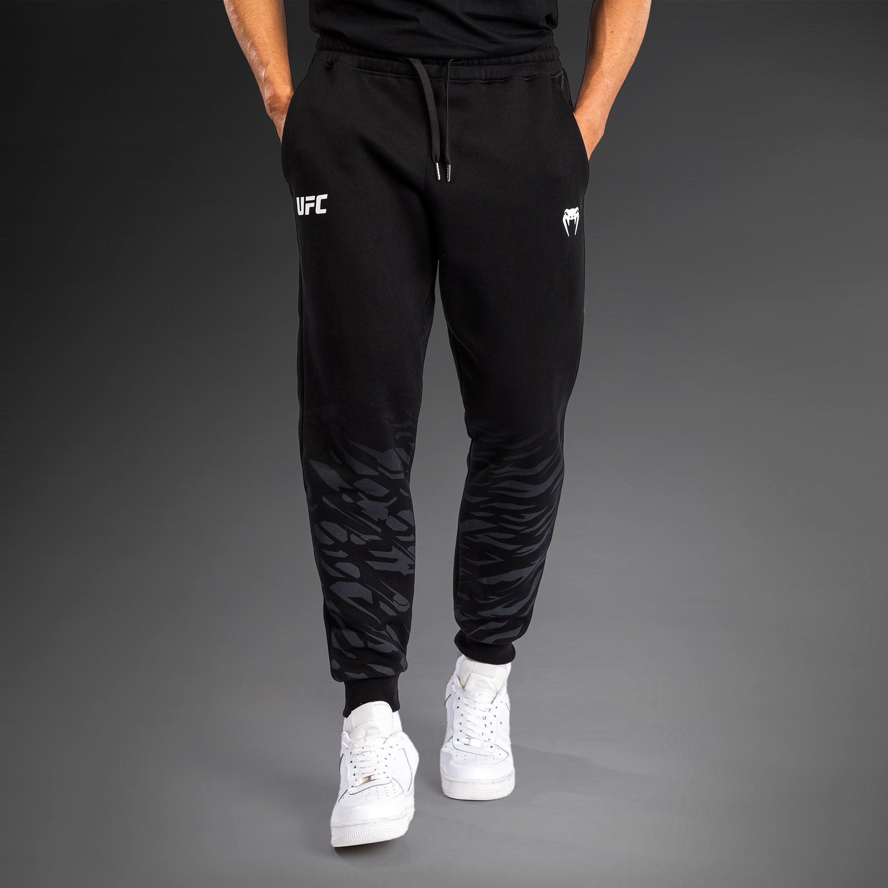 White Venum and UFC logo detailing at the hips add finish to these casual sweatpants. This black/gold colorway is reserved for UFC champions.