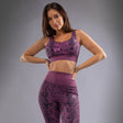The Venum Amazonia Women’s Sports Bra features a striking asymmetric back with interlocking straps. This colorway with metallic detailing elevates a classic snakeskin print for a uniquely Venum set.