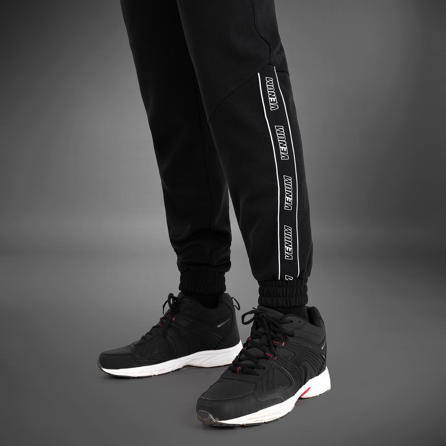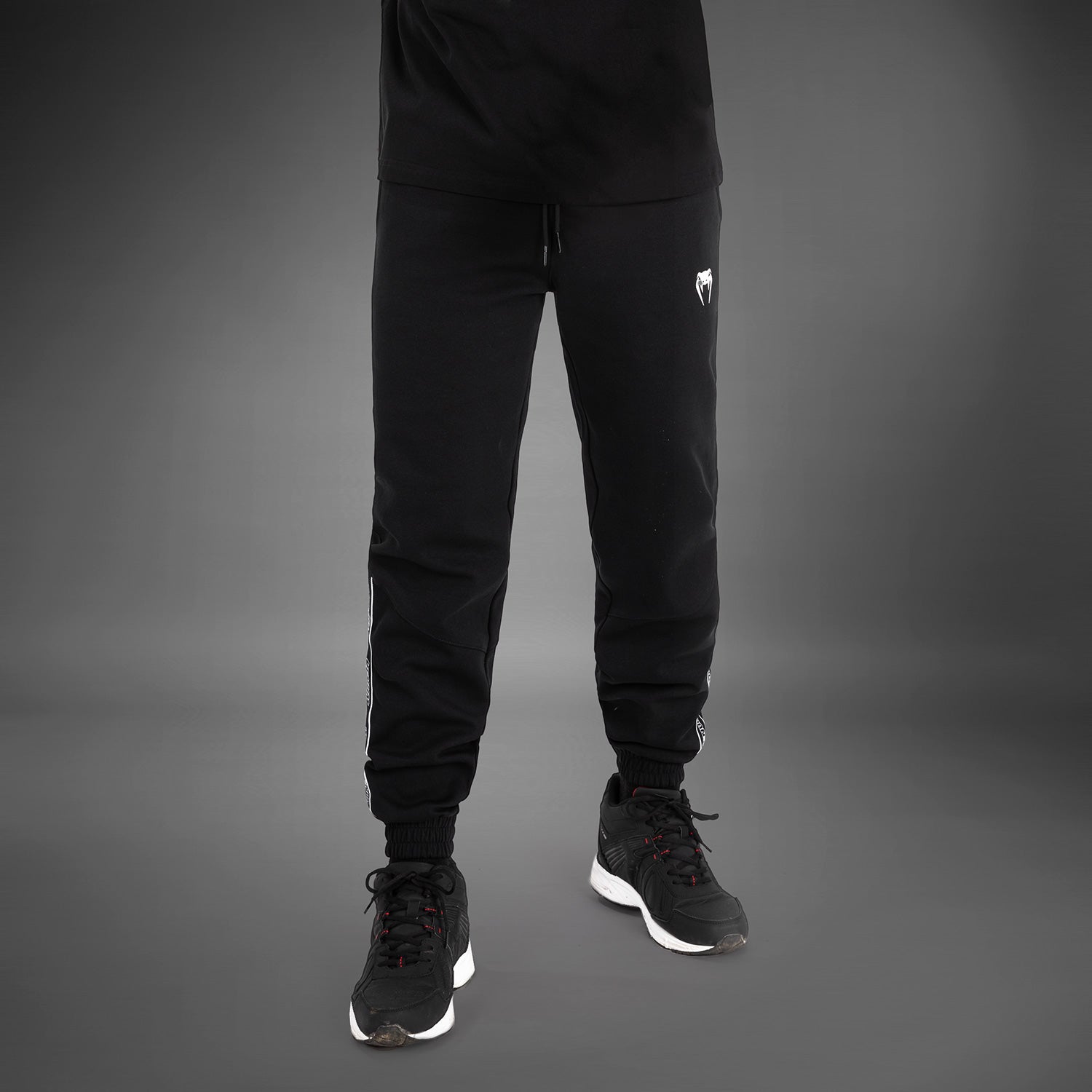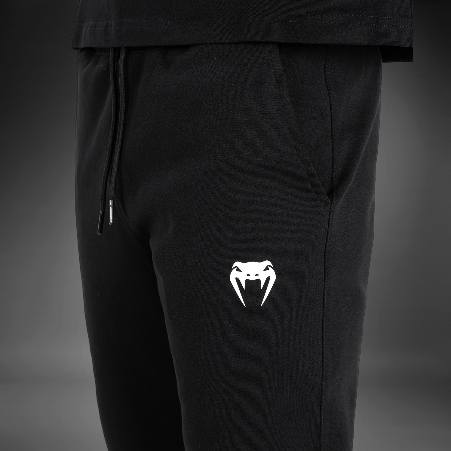The Black colorway features branded detailing along the outer hem of the lower leg. Meanwhile, the Venum snakehead logo sits in white at the hip.