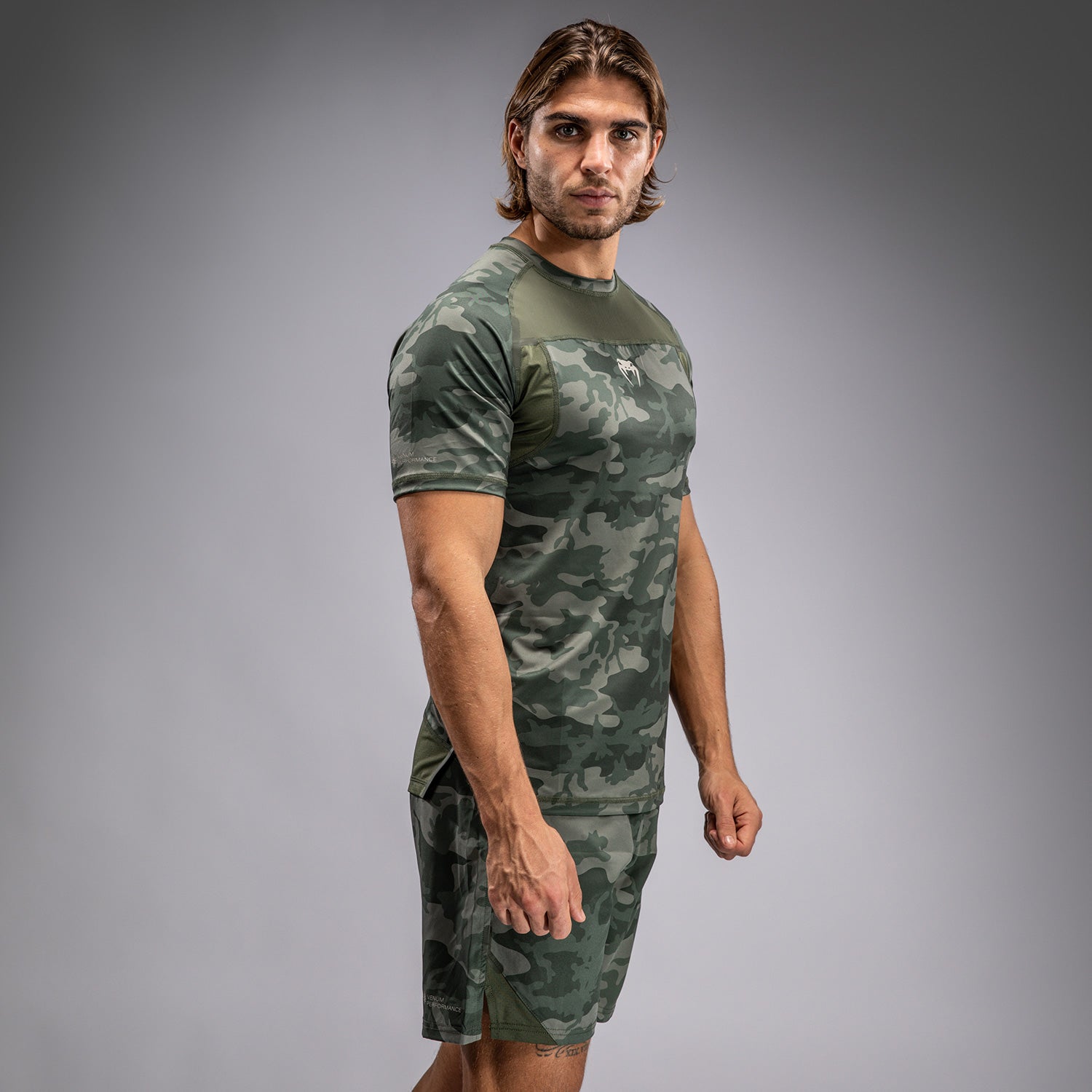 Venum G-Fit Air Men’s Dry-Tech T-Shirt in Army Camo is a lightweight performance shirt engineered for comfort and freedom of movement. Dry-Tech technology and mesh paneling serve to wick away moisture and ensure you stay cool during even the most intense training. Perforated detailing at the back offers further ventilation.
