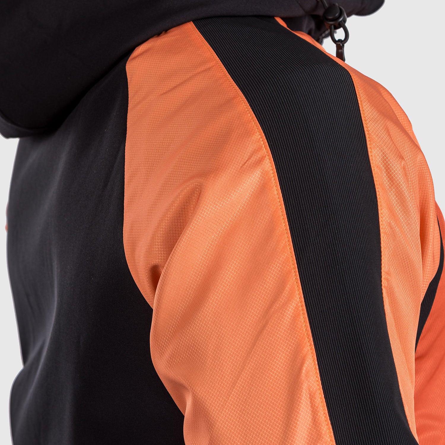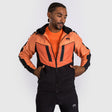 Black zips and a black Venum logo at the chest contrasts with the orange shades of the hoodie for a striking sportswear finish.
