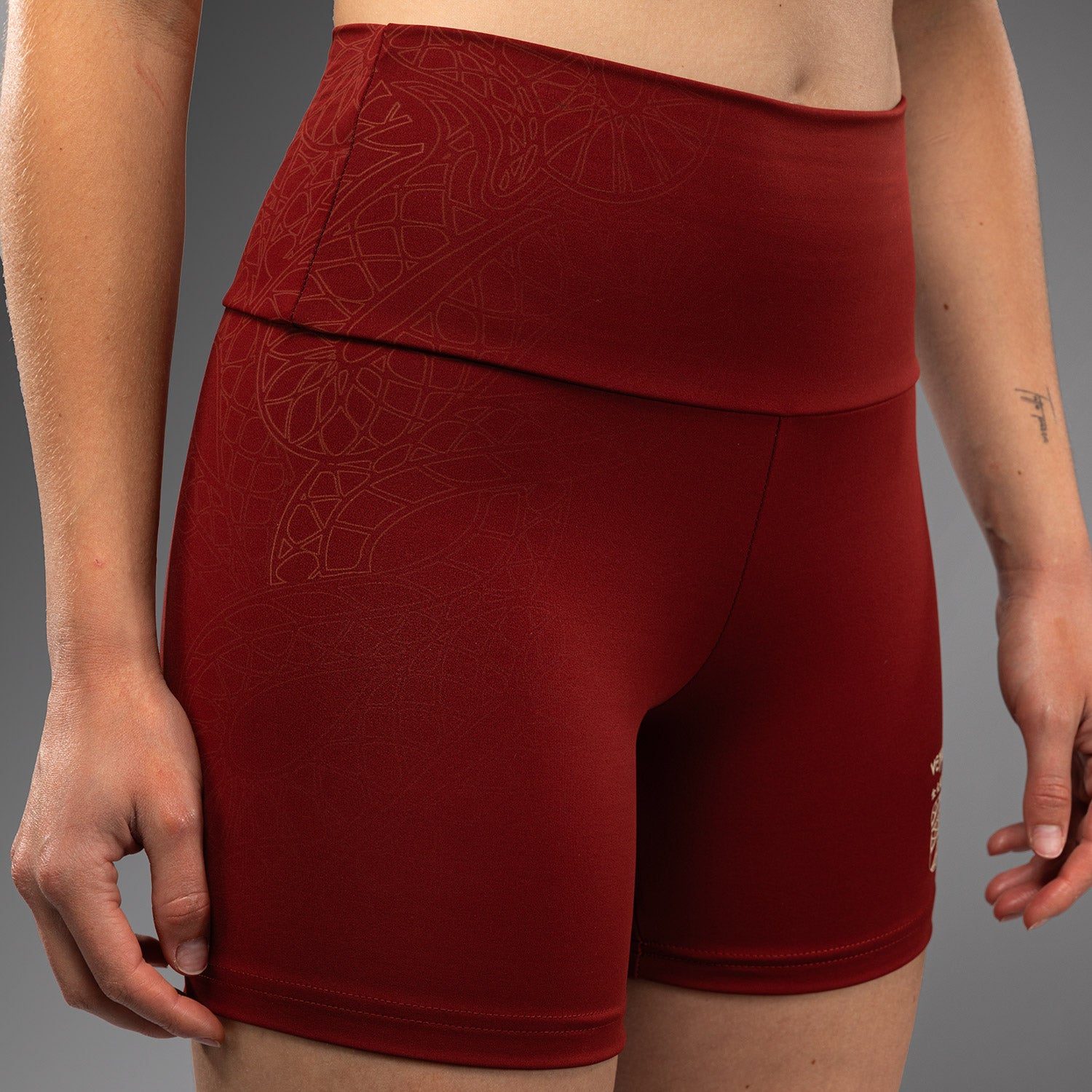 Breathable and sweat wicking, the Venum Serpenti Women’s Vale Tudo Shorts will keep you moving freely and in comfort. The high waist and compressive “second skin” fabric stay in place, no matter how intense training gets.