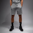 The Silent Power Shorts in Cloudy Grey features open side pockets and back pocket with a logo motif. The drawstring waistband offers a secure, comfortable fit.