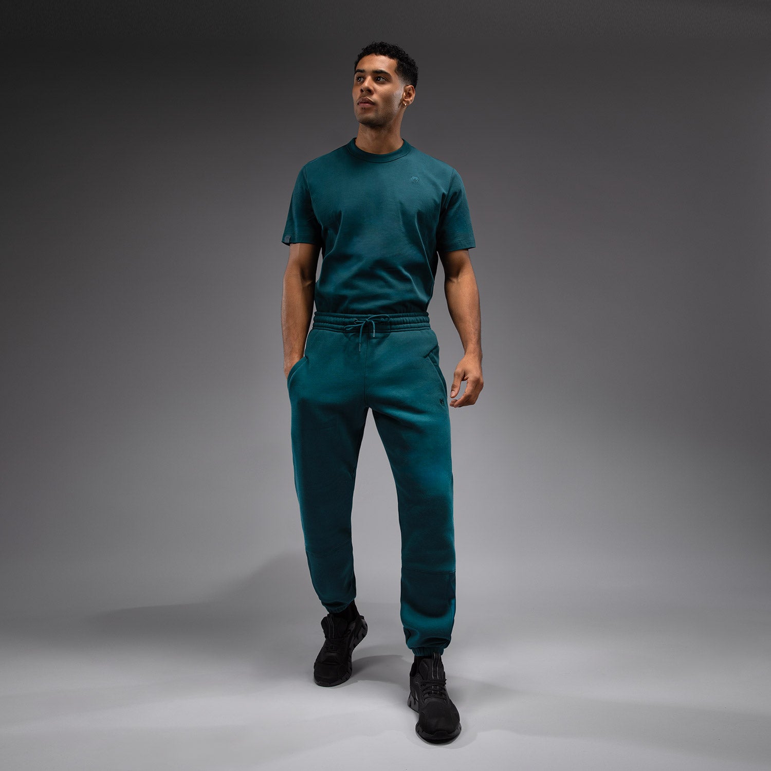 The Silent Power Men’s Joggers in Paon Green features open side pockets and a zippered back pocket with a logo motif. The drawstring waistband offers a secure, comfortable fit.