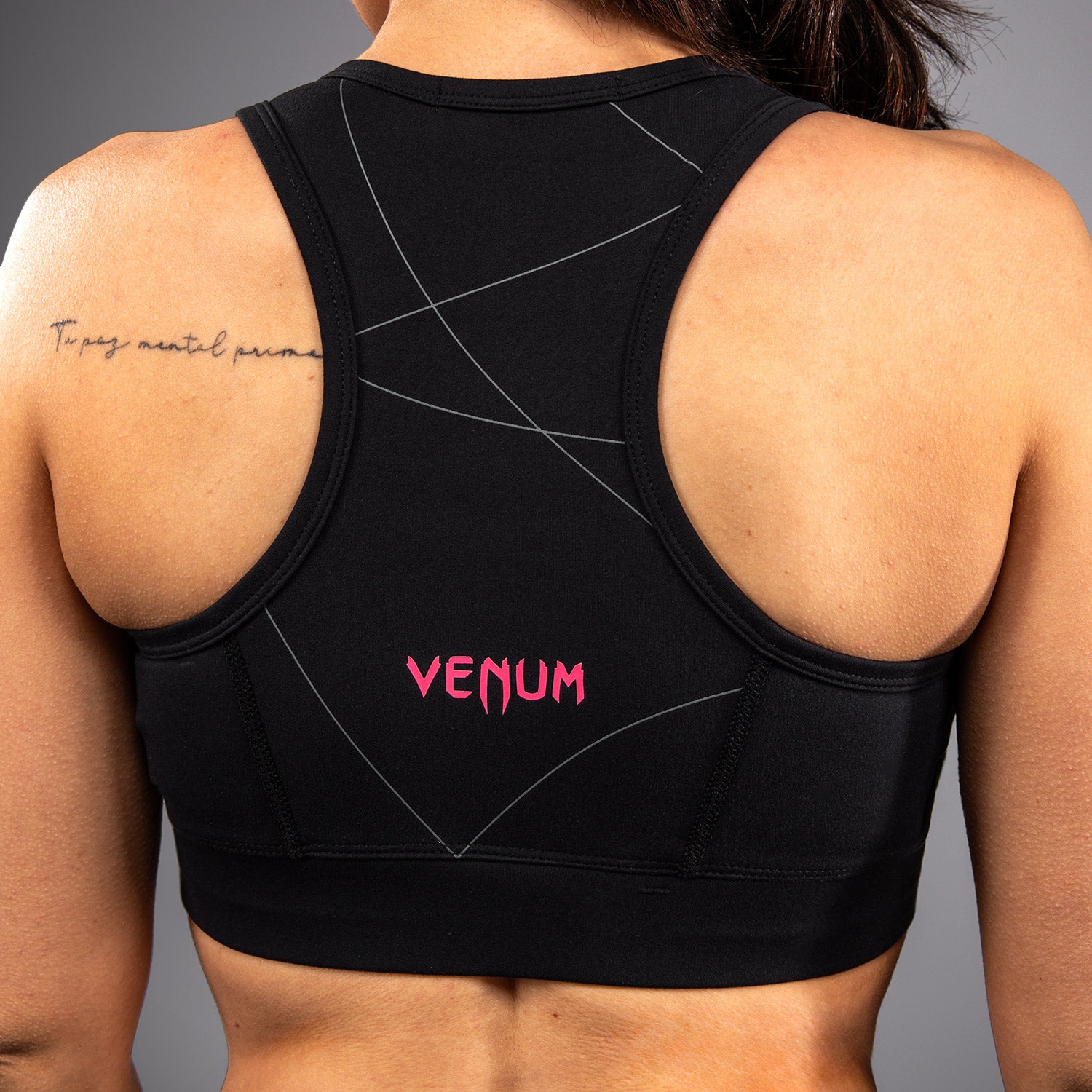 Venum Tactical XT Women’s Sports Bra in Black/Storm Grey is a racer-back bra offering full range of motion while remaining supportive. It is suitable for combat sports and the gym.