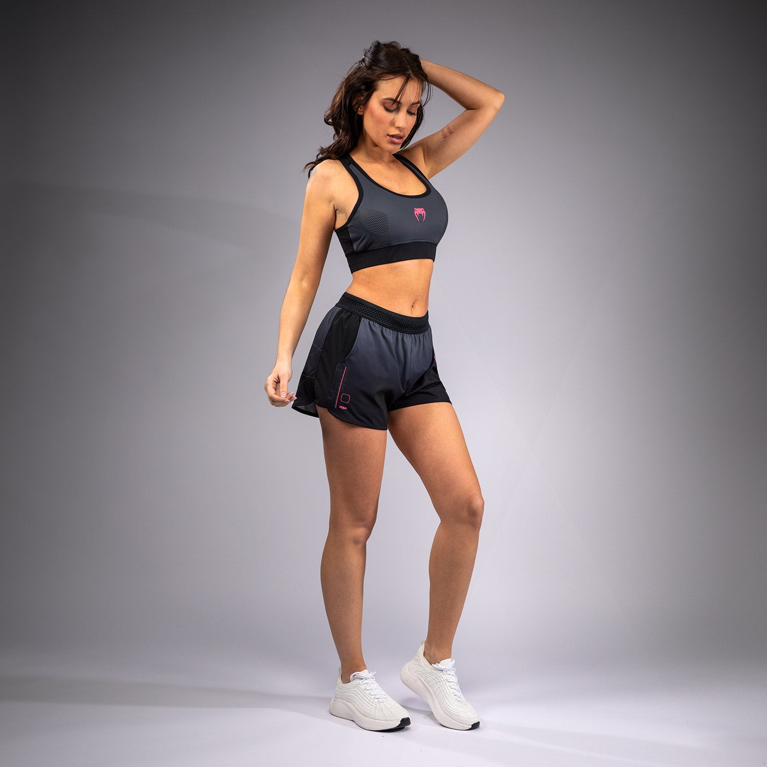 This flattering women’s training short has been designed with a subtle ombre effect accented by dynamic colored lines and pops of pink.