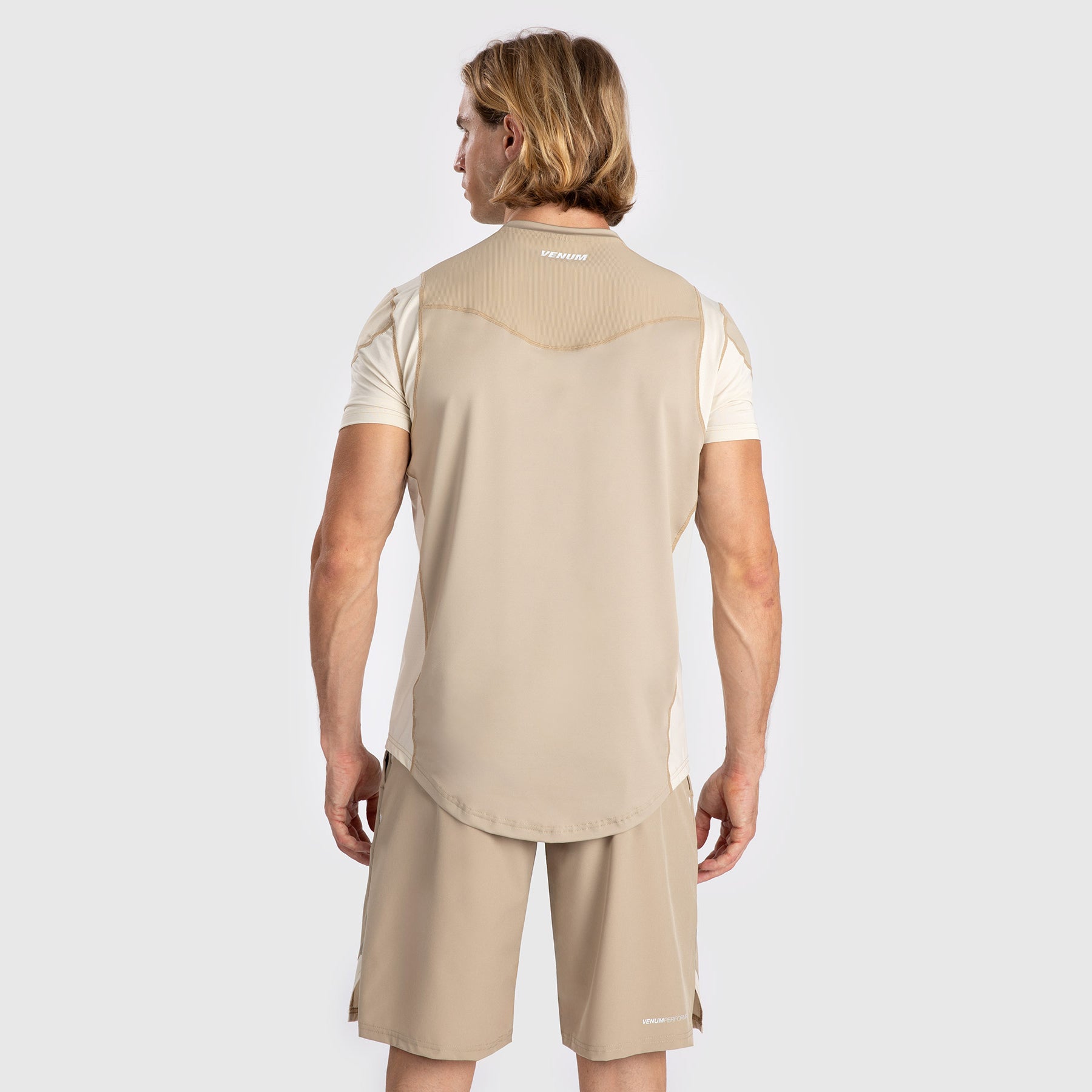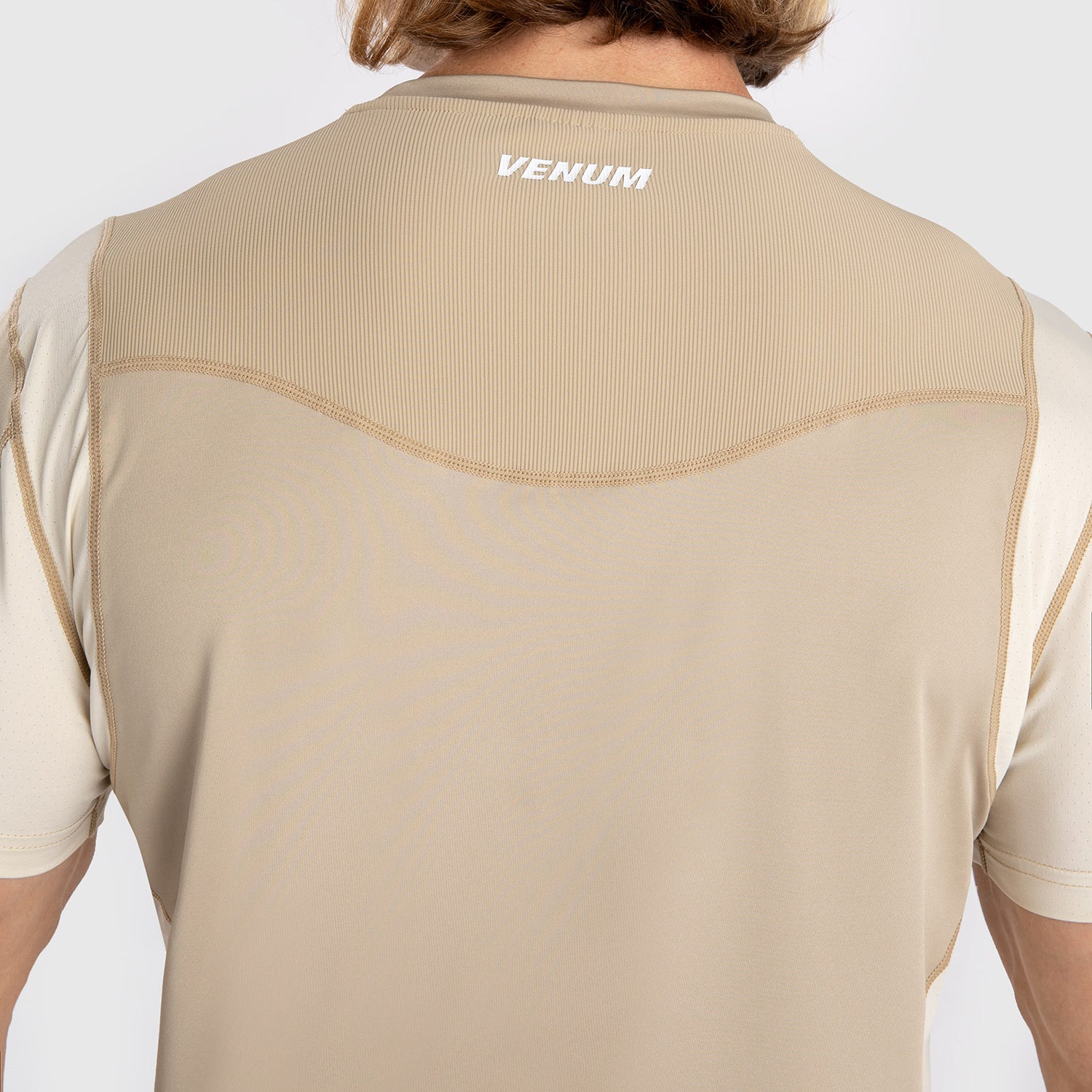 The Venum Tempest Men’s Dry-Tech T-Shirt in beige/sand is constructed with dry-tech fabric to wick away sweat and keep you comfortable and cool, even during the most intense training sessions.