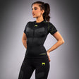 The Venum Training Camp 4.0 Women’s Short Sleeve Rashguard serves as a second skin to provide both protection against injury and freedom of movement during no-gi jiu-jitsu and grappling. The rashguard’s compression technology also helps encourage muscular recovery.