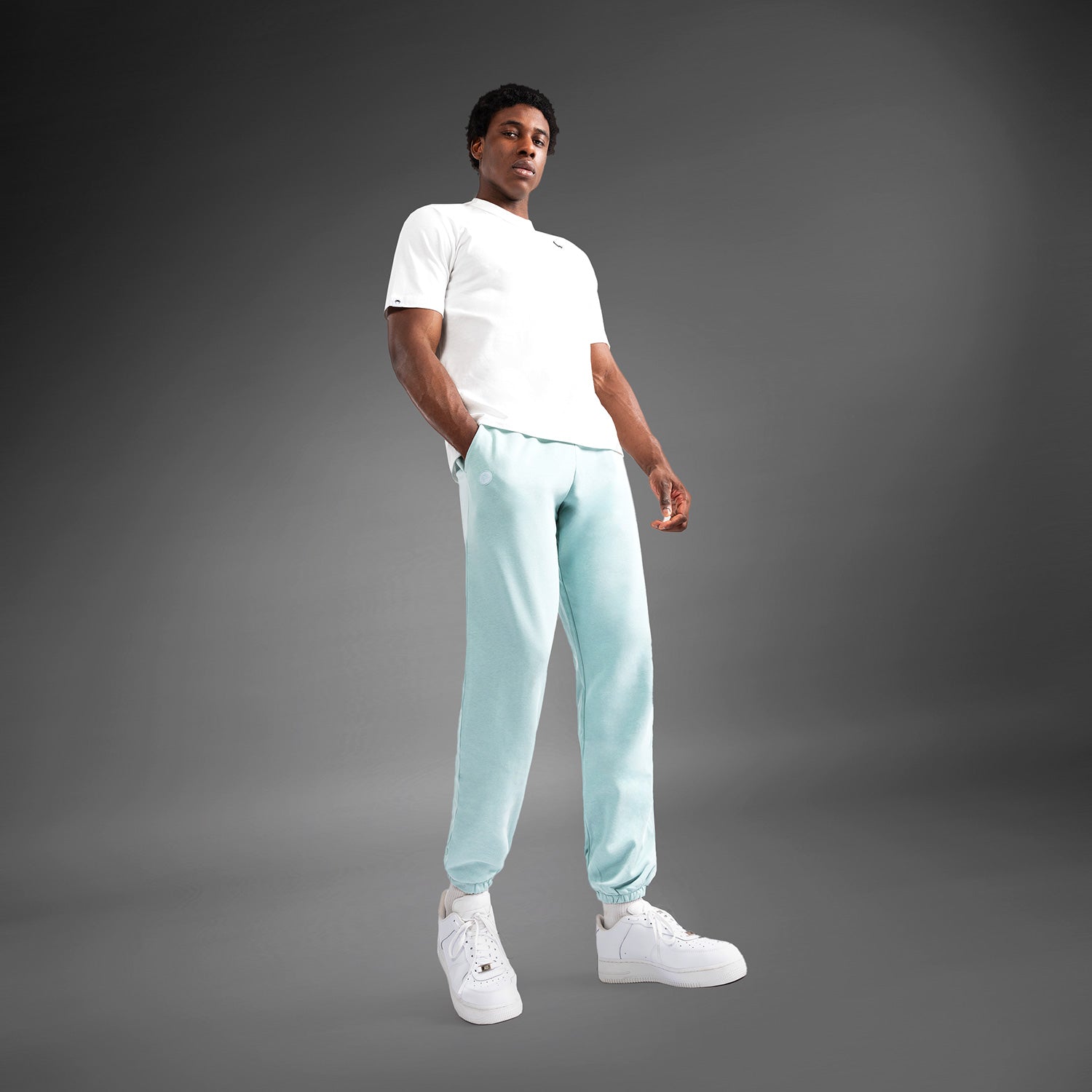 The Venum Vortex XL Lite Men’s Joggers in Ocean Blue feature open pockets and an elasticated waistband, with the Venum logo embroidered at the hip in white. The vortex graphic sits at the right hip, also in white.