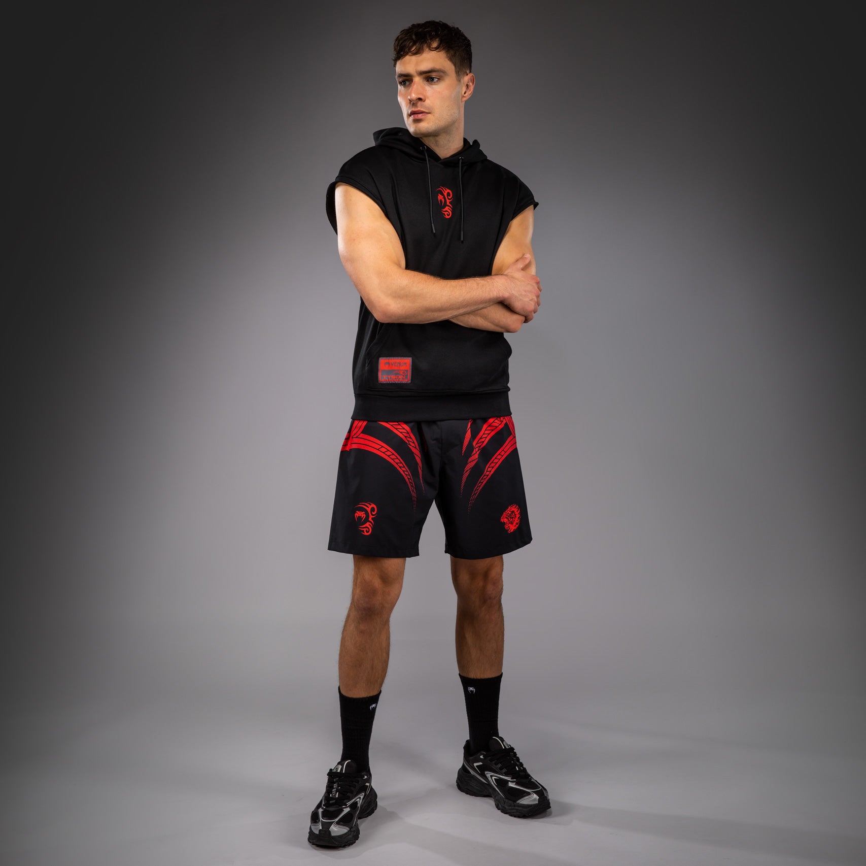 The Venum x Mike Tyson: Tiger Sleeveless Hoodie is a hooded pullover sweater with a kangaroo pocket, made with premium cotton. The wide armholes allow for greater mobility and ventilation. Perfect for the boxing gym.