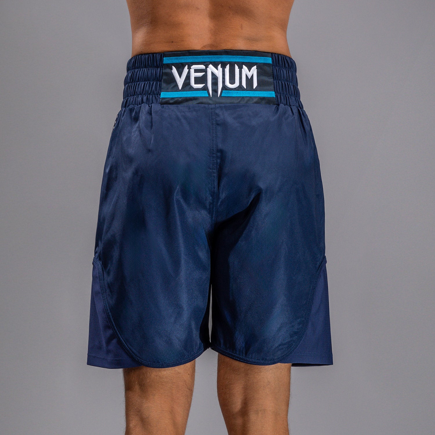 A truly collaborative co-branded design, the Top Rank logo features on the traditional style patch at the front of the waistband, while the Venum logo sits at the back of the waistband. The main body of these navy blue shorts feature the Venum snakehead fangs in a lighter blue.