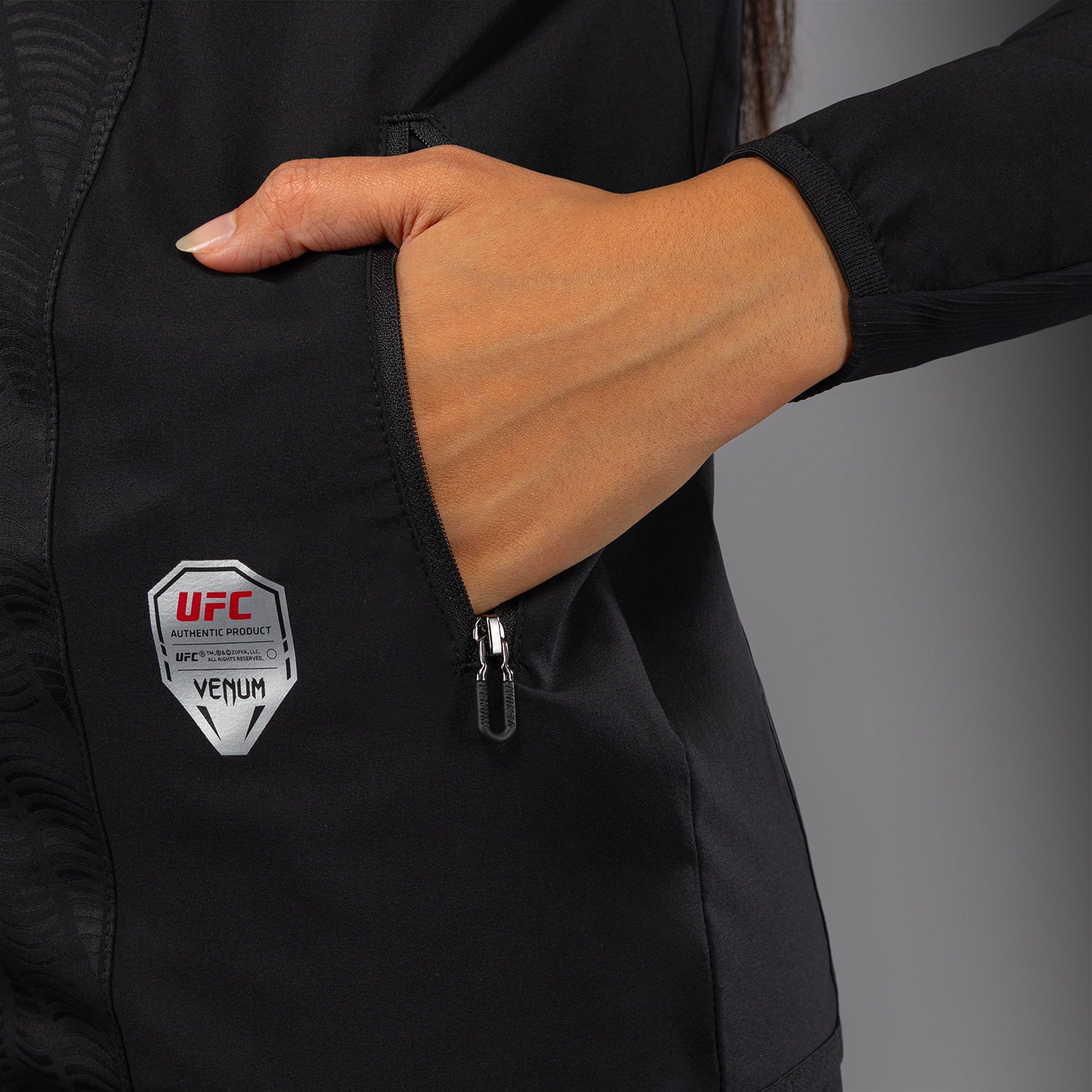 The Women’s UFC Zenith by Venum Authentic Fight Night Walkout Hoodie is a full-zip hooded pullover made with lightweight performance fabric and premium detailing throughout.